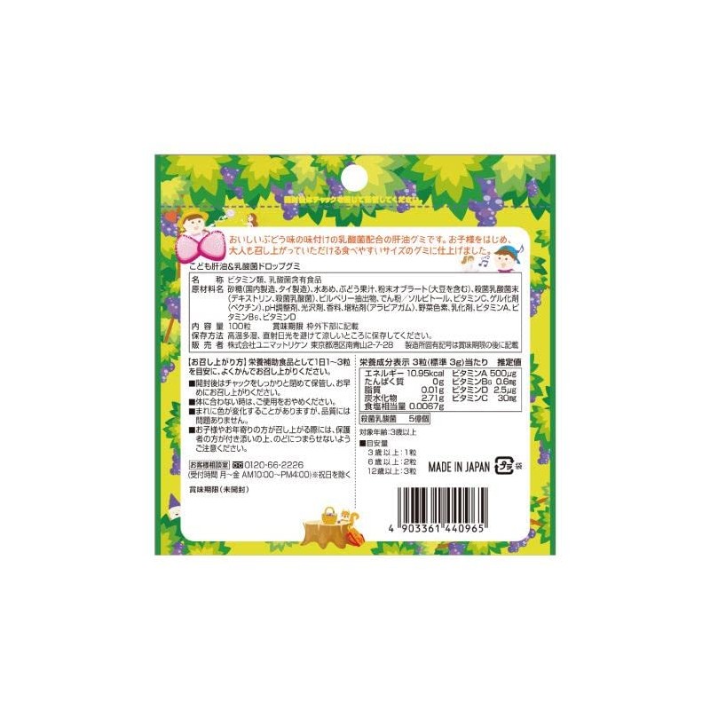 Unimatt Riken Children's Liver Oil & Lactic Acid Bacteria Drop Gummy, 100 Capsules, Set of 3
