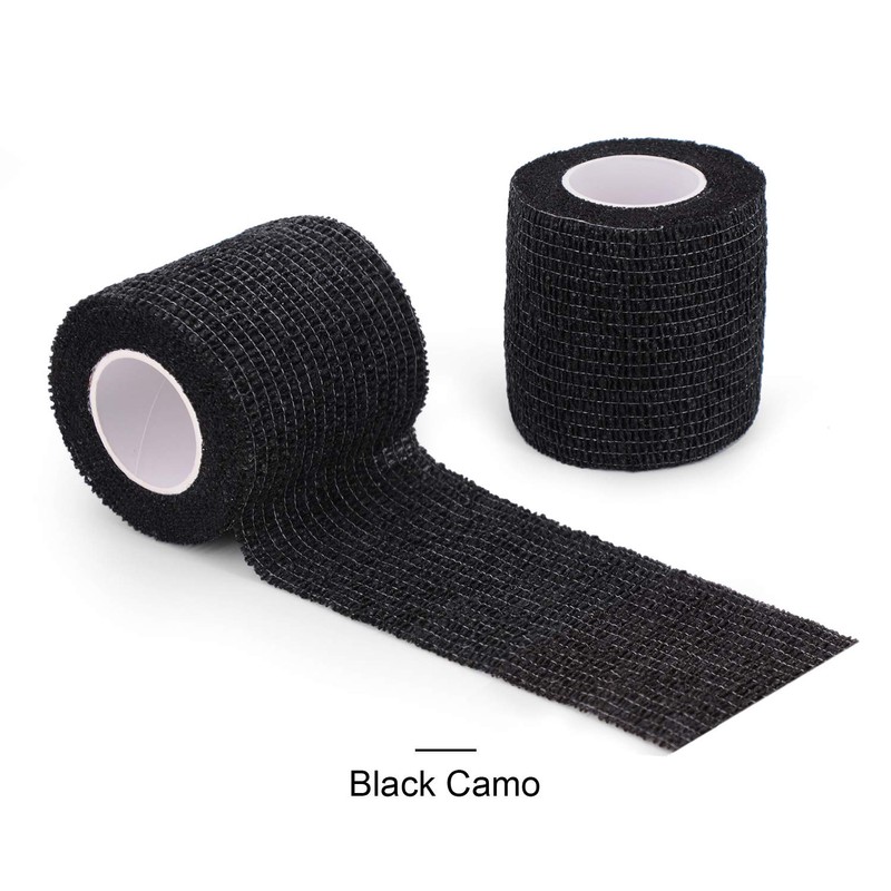 Uning Self-Adhesive Camouflage Tape Wrap for Gun, 6 Roll Protective Camo Form, Non-Woven Stealth Camo Tape Stretch Bandage for Outdoor Camping Hunting Rifle Shotgun 5CM x 4.5M (Black Camo)