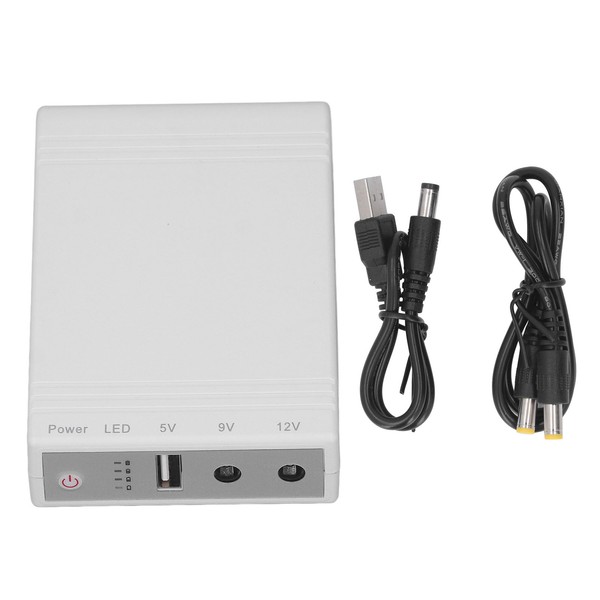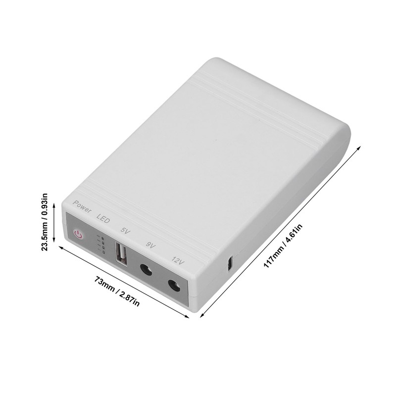1、MAIN PURPOSE: Small uninterruptible power supply for power outages, with battery backup mode to ensure that your device can still use the network in the event of a power outage. 2、WIDE APPLICATION: This portable uninterruptible power supply is compatible with most router, modem, security camera, cell phone, fax machine, fingerprint recorder, DSL, and more. 3、2 INPUT METHODS: This mini UPS has 2 input methods, 9V or 12V DC adapter (faster) or 5V 2A USB (slower), which is efficient and practical. 4、BUILT IN BATTERY: This uninterruptible power supply has built in batteries with 10400mAh capacity, providing longer endurance, standard USB port, which can be used as a regular power bank. 5、CIRCUIT PROTECTION: This compact UPS has short circuit protection, voltage fluctuation protection, overcharging protection, over discharge protection, and temperature protection to ensure safe operation.