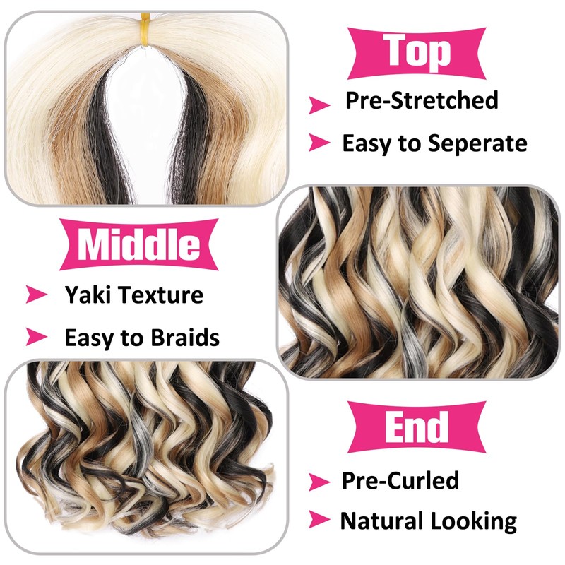 Hair Color: 1B#, T30#, T27#,53#,RS30#,1B3027#,1B27613# . French Curl Braiding Hair