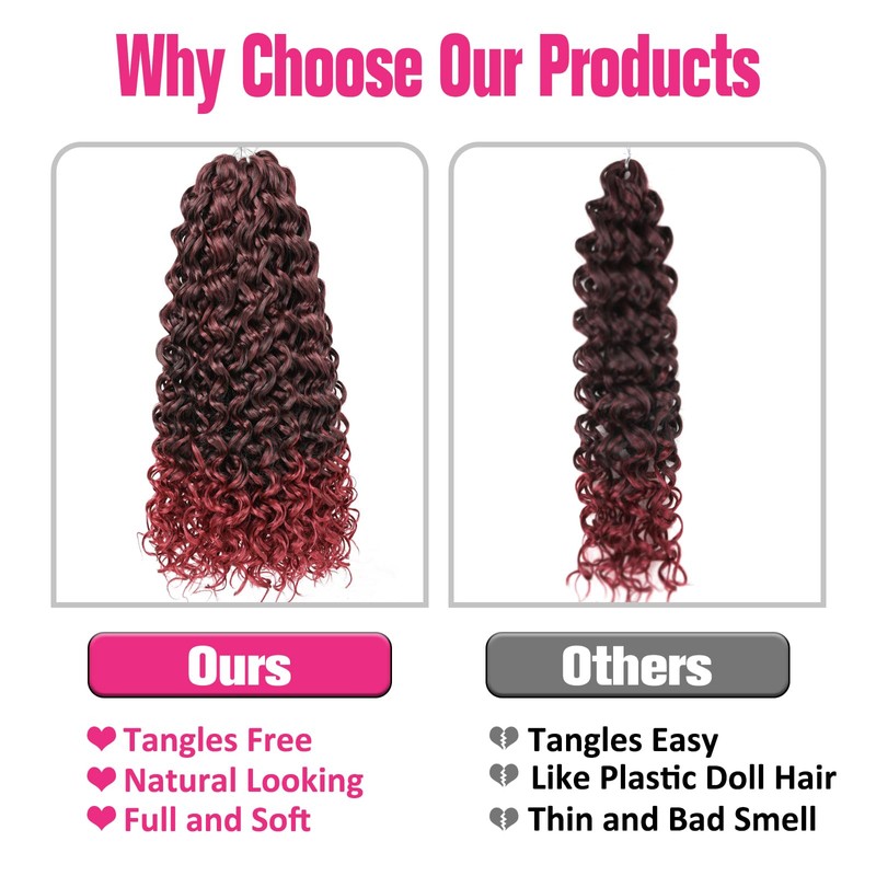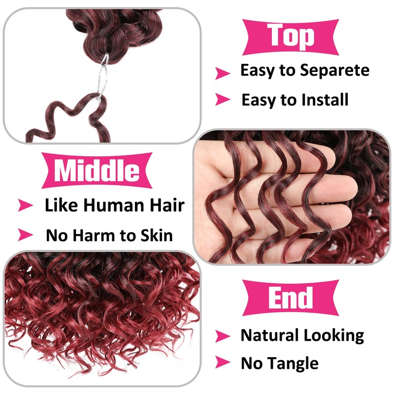 Unionbeauty GoGo Curl Crochet Hair 18 Inch 8 Packs Curly Braiding Hair for Goddess Box Braids Ocean Wave Crochet Braids Ombre Burgundy Synthetic Beach Curl for Black Woman TBug#