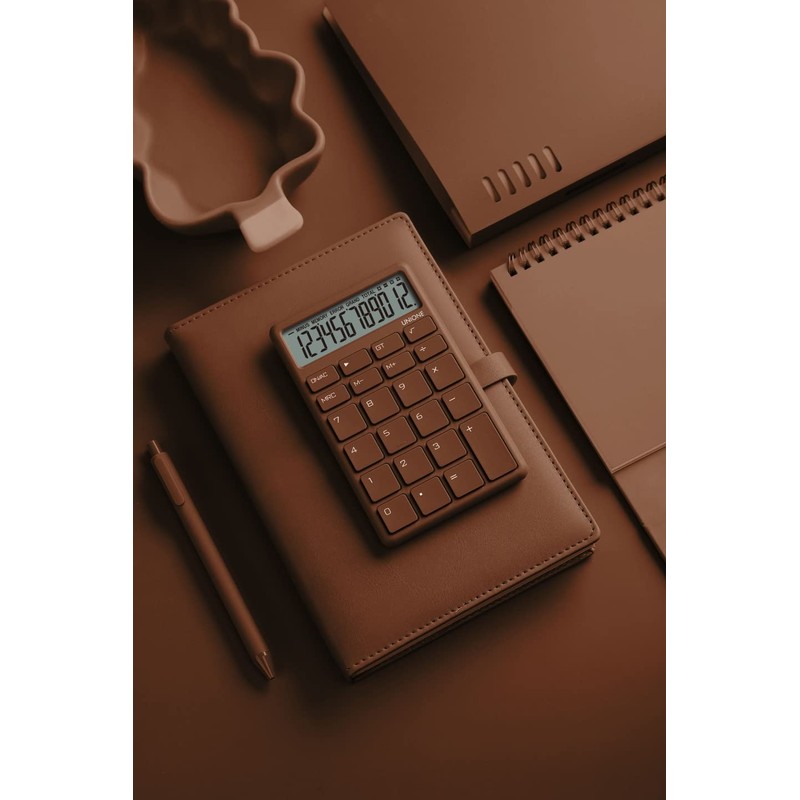 UNIONE Pocket & Desktop Beige Calculator with a Bright LCD, Dual Power Handheld Desktop. Color. Business, Office, High School