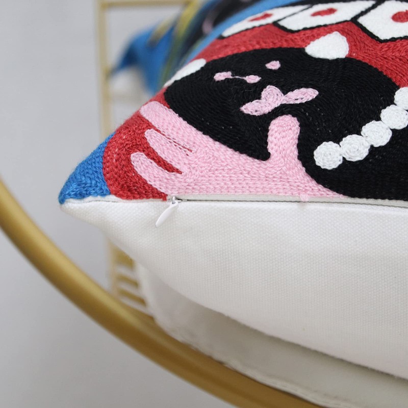 - Design:This embroidery pillow cover has an invisible zipper ,embroidered pattern only on the front side,backside is white color cotton.