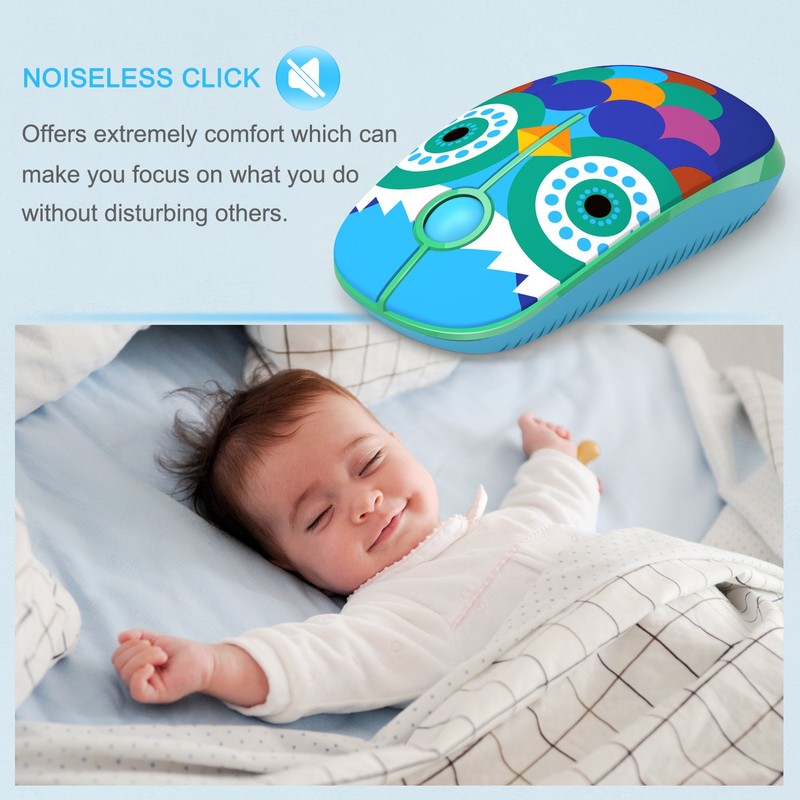 Unipows Wireless Mouse - 2.4G Slim Portable Computer Mouse with Nano Receiver, Less Noise Mobile Optical Mice for Notebook, PC, Laptop, Desktop (Owl Blue)