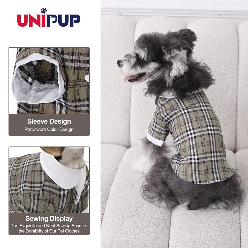 UNIPUP Plaid Dog Shirt for Small Dogs, Summer and Fall Clothes with Double-Layer Design and Velcro Closure