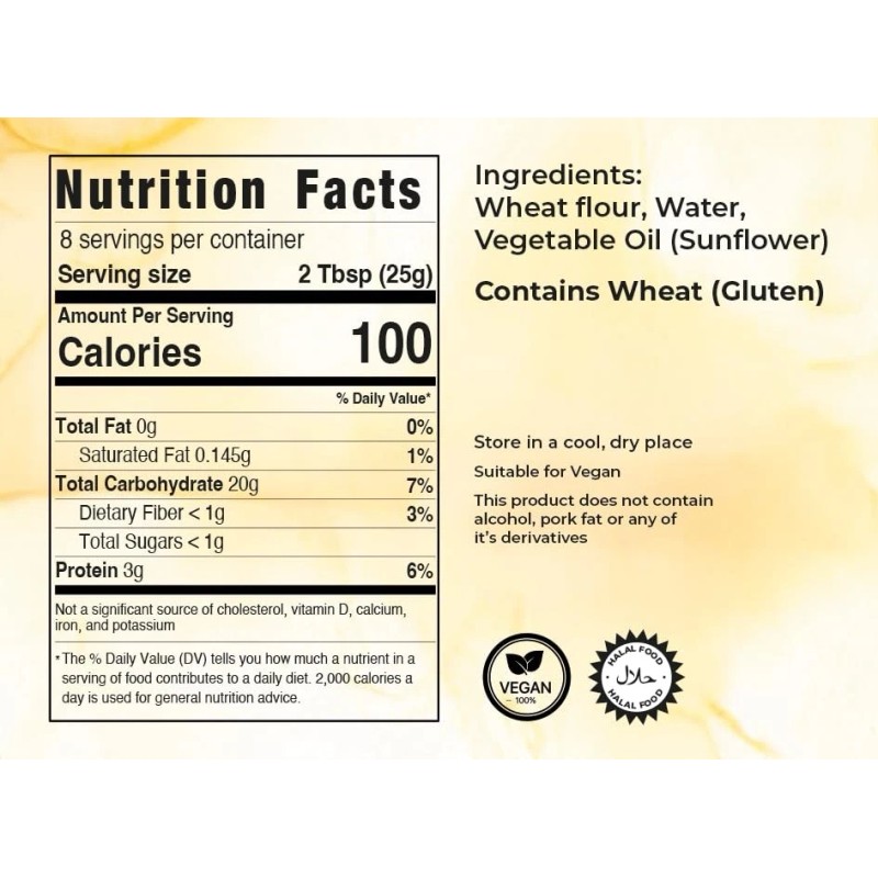 - Ingredients: Wheat Flour, Water, Vegetabla Oil (Sunflower)