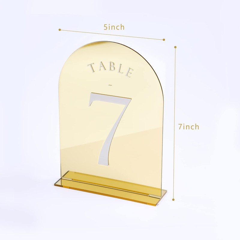 - Package Includes: 1-20 gold mirror printed table numbers in white with stands, 5 x 7 inch each. Total 20 sets in one pack. These stylish and practical table numbers make a wonderful gift for friends or family planning their special events. Each table number and stand is individually packaged in a sturdy , ensuring they arrive in perfect condition.