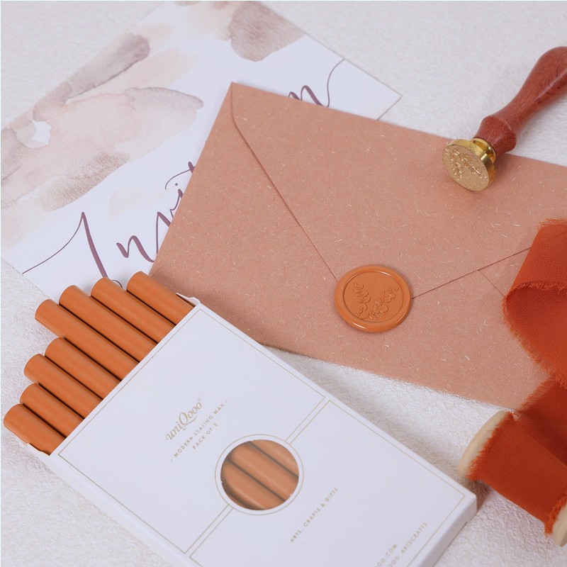 UNIQOOO Rust Orange Sealing Wax Sticks for Wax Seal Stamp - Perfect for Wedding Invitations, Cards Envelopes, Snail Mails, Wine Packages, Christmas Gift Ideas, Pack of 8