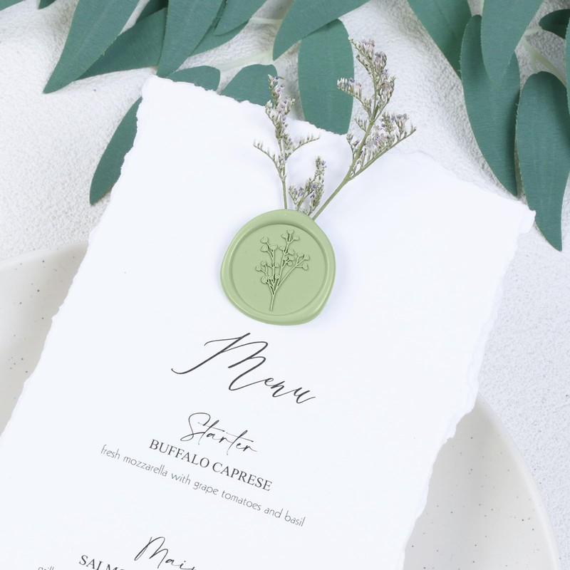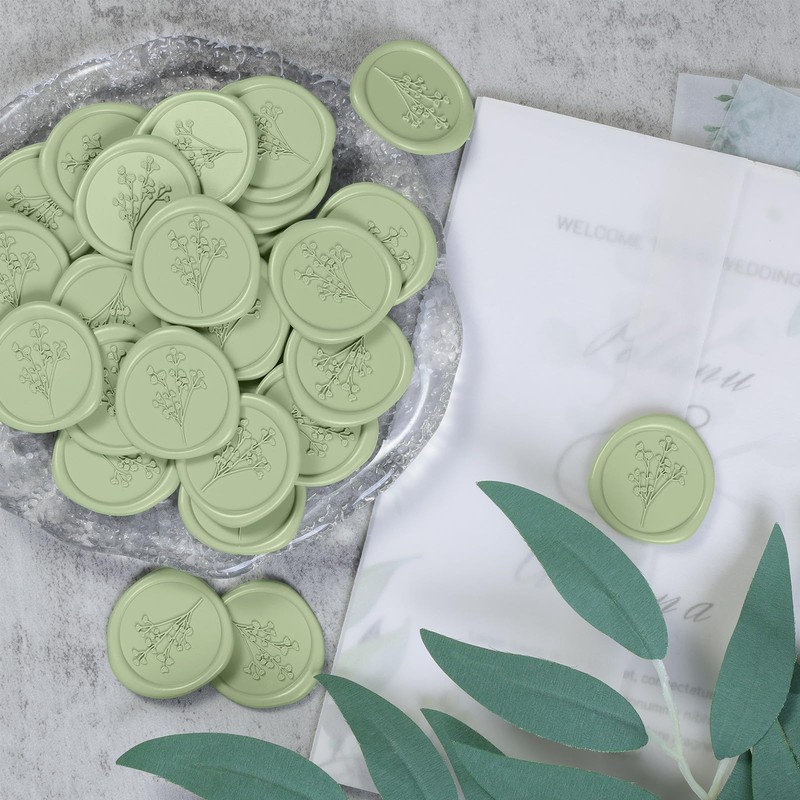 - PACKAGE INCLUDES - You will receive 50 pieces of sage green color wax seal stickers in baby's breath style designs. The wax seal sticker diameter is 1.2 inches/30mm and with almost the same size of adhesive on the back. Weighs 0.02oz per seal and may add weight to envelopes.