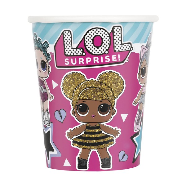 Unique 23796 Paper Cups-266 ml- LOL Surprise Party-Pack of 8, Multicolour