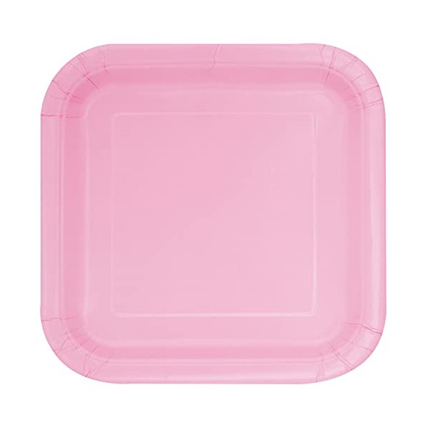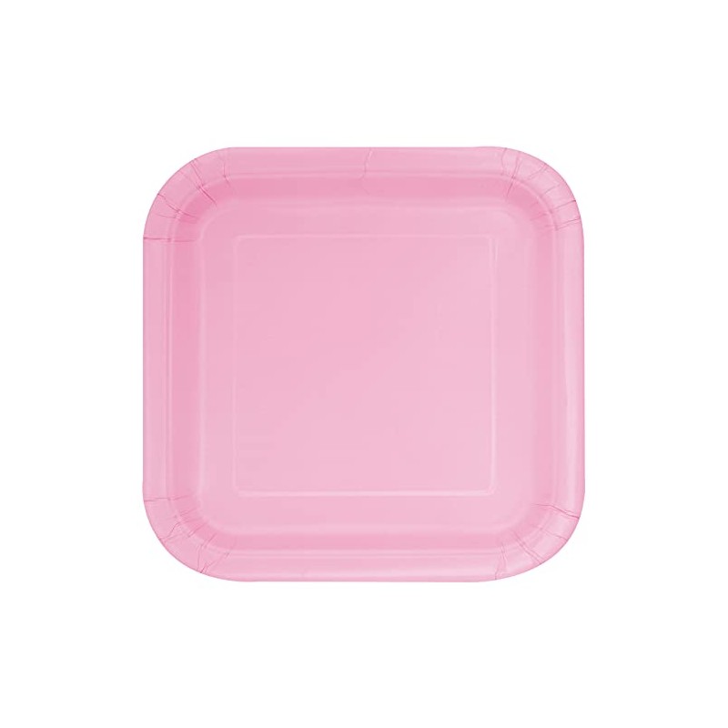 Unique 30881 9" Square Dinner Plates | Lovely Color Theme | 14ct, Solid, Baby Pink, Pack of 14