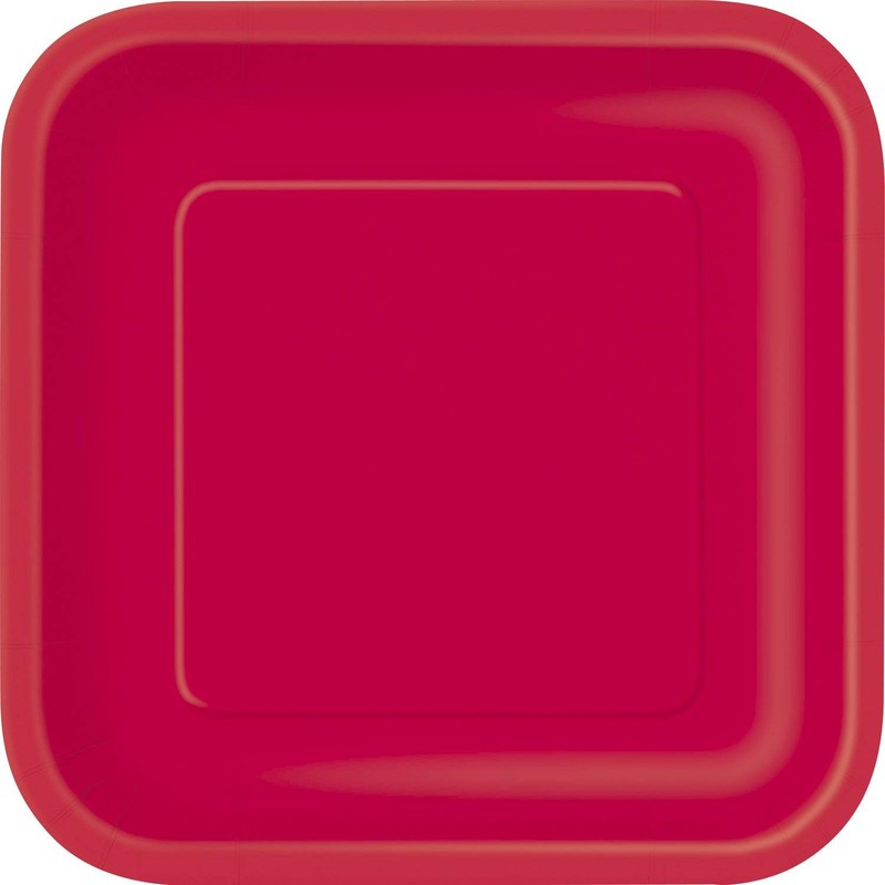 Unique 31502 7" Square Dessert Plates | Ruby Red Color Theme | 16ct, Plain, 16 Count (Pack of 1)