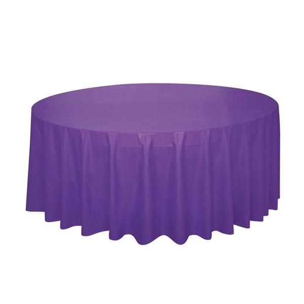Unique 47039 Round Plastic Tablecloth-2.13 m-Neon Purple