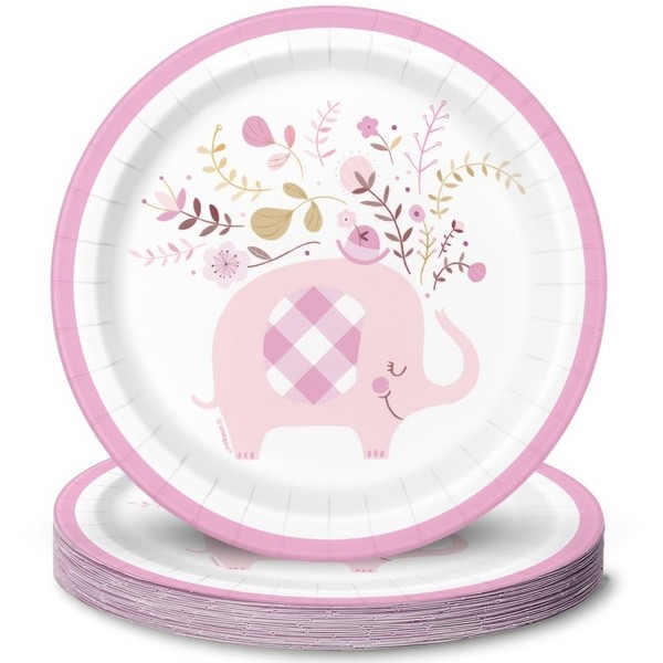 - BEAUTIFUL DESIGN - Create a striking buffet table with these round plates featuring pink floral elephants.