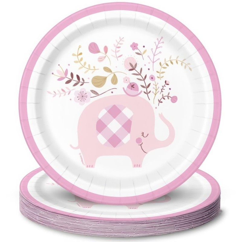 - Includes 8 round plates with pink elephants. 17.8 cm