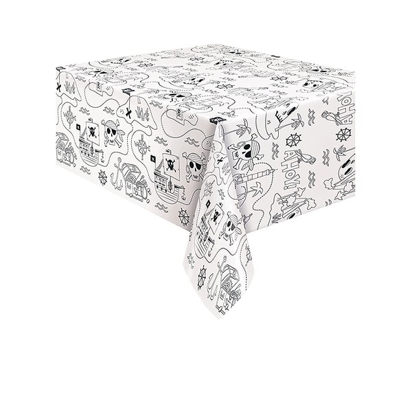 Unique 78413 Pirate Party Coloring Paper Rectangular Table Cover | 1 Pc, Black,54 x 84 inch