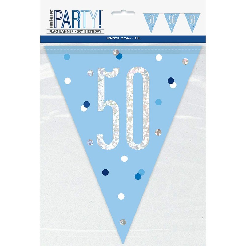 - PACKAGE INCLUDES: 1 blue 50th birthday pennant banner.108".