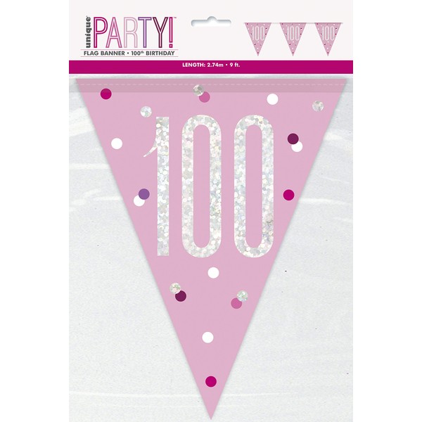 Unique 83459 Pink Plastic Pennant Banner-9' Silver | 1 Pc, Age 100