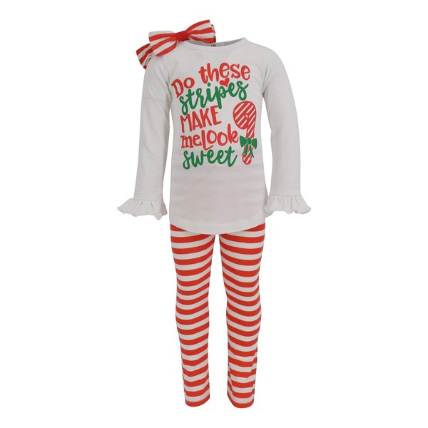 - Estilo [bastón de caramelo]: perfecto para la fiesta de Navidad familiar, para una cita de juegos por la tarde o incluso para el día de Navidad. El patrón de rayas a juego en los leggings y la diadema hacen que este sea un punto de atracción y el aplique de bastón de caramelo hace que sea un montón de diversión. Este conjunto es el complemento perfecto para el clóset de invierno y Navidad de tu niña.