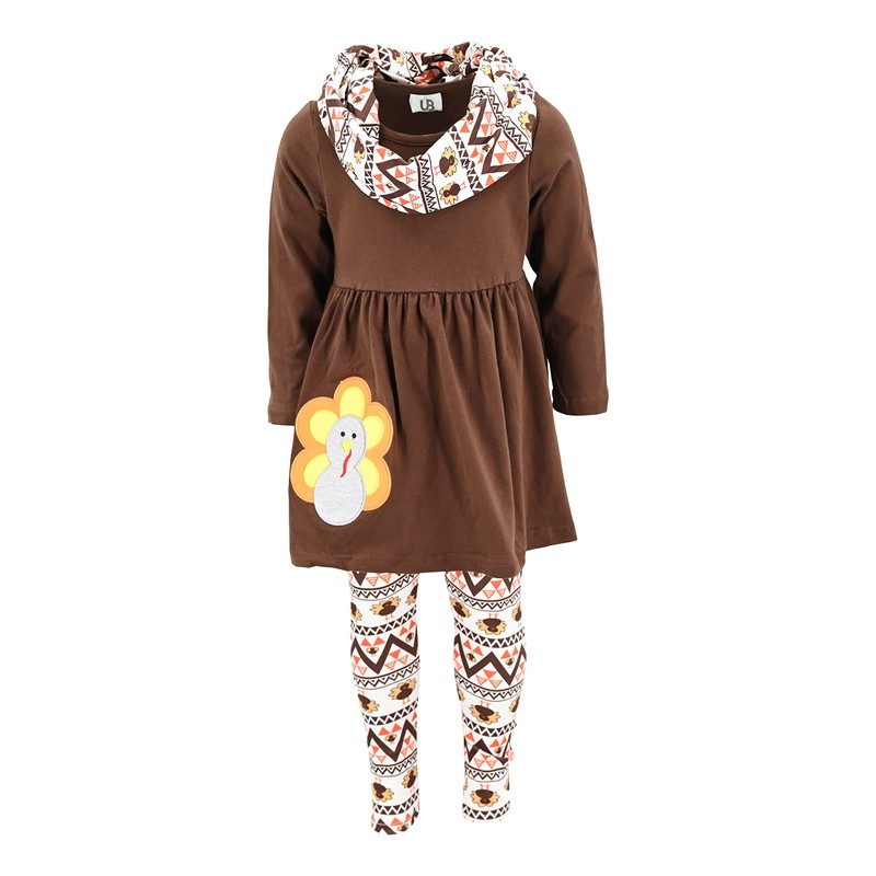 - WHAT KIDS [LOVE]: Comfort and TURKEYS! Brown and orange colors bring out the Fall season in this beautiful outfit and the cute little turkey will make this your little girl's favorite!