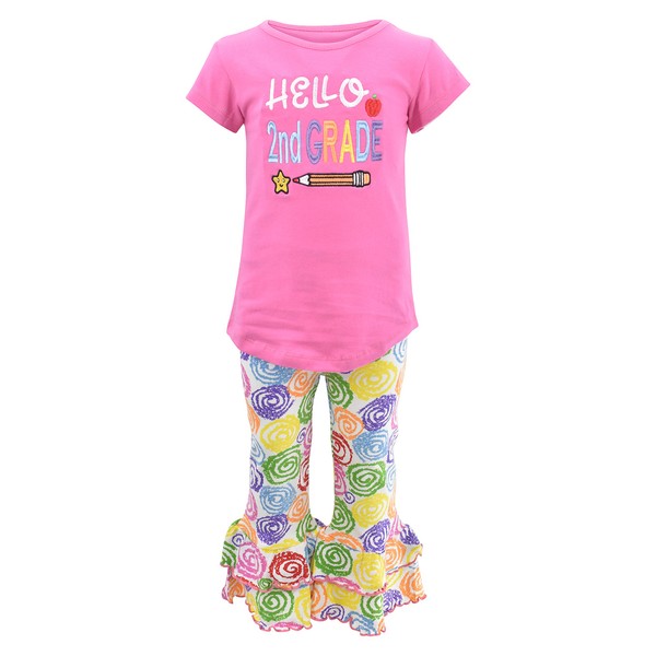 Unique Baby Girls Hello Class Back to School Outfit (7Y, Pink 2nd Grade)