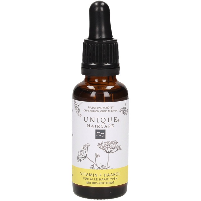 Vitamin F Hair Oil is a particularly lightweight organic hair care product. It is suitable for all hair types as it is easily and quickly absorbed. The hair oil gives your hair a smooth, soft feel for a naturally beautiful shine. The organic jojoba oil contained in the formulation nourishes and protects the hair with the help of vitamin F - the condition of the hair improve and it is completely protected. At the same time, an invigorating fragrance reminiscent of freshly picked summer flowers, wraps around the individual strands.