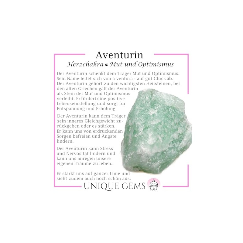 - Aventurine – The aventurine can strengthen the individual personality of the wearer and restore inner balance. It can relieve stress and nervousness and stimulate us to live our dreams. The aventurine can promote a general positive attitude to life