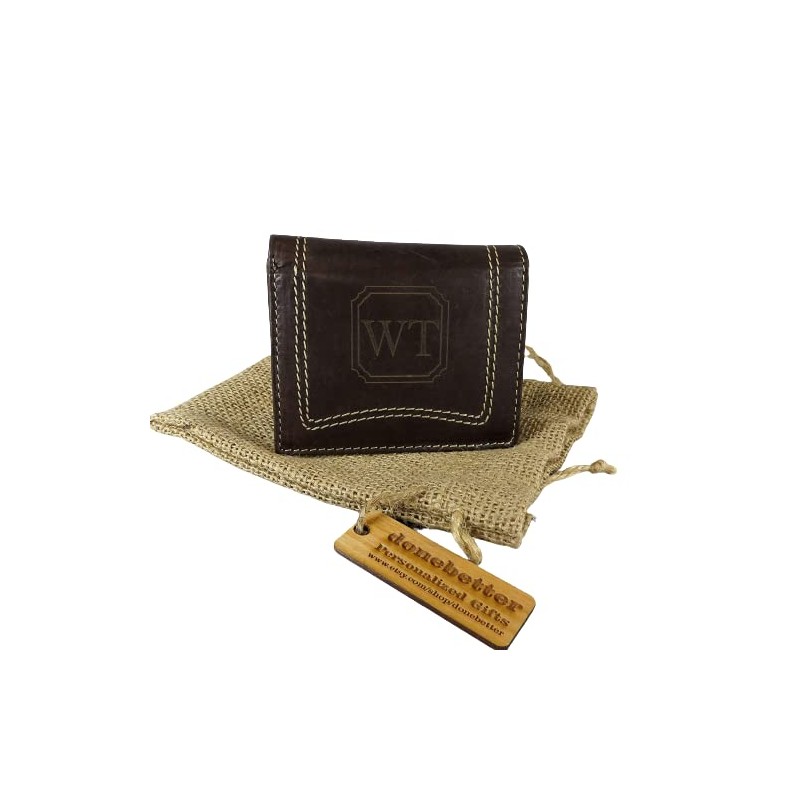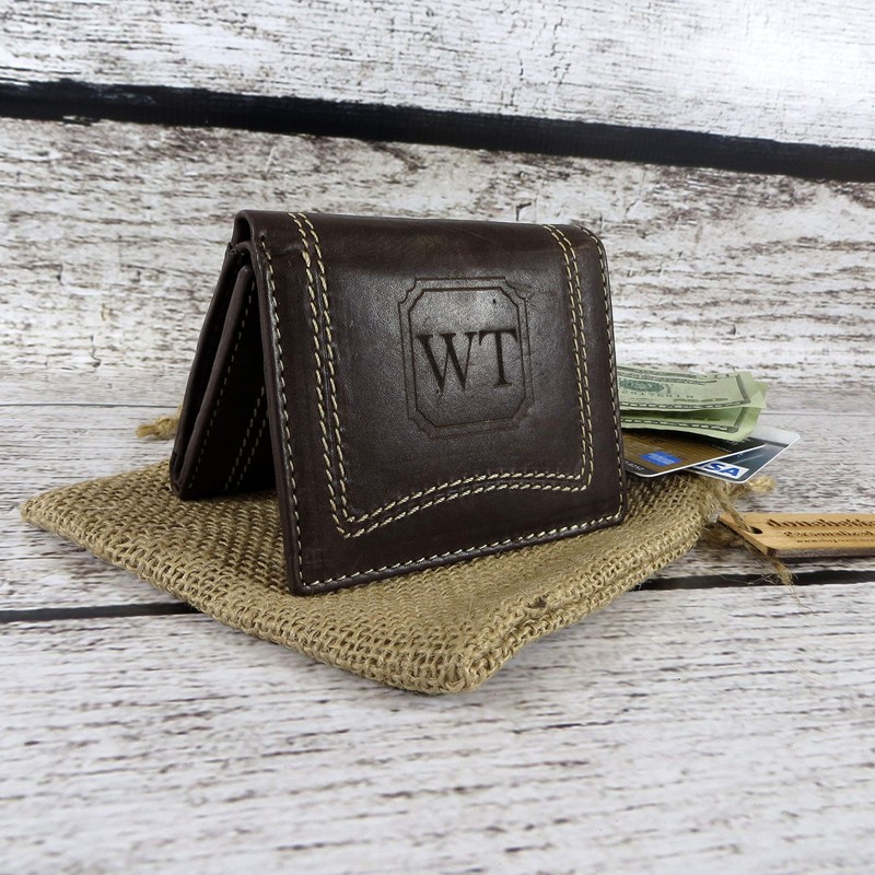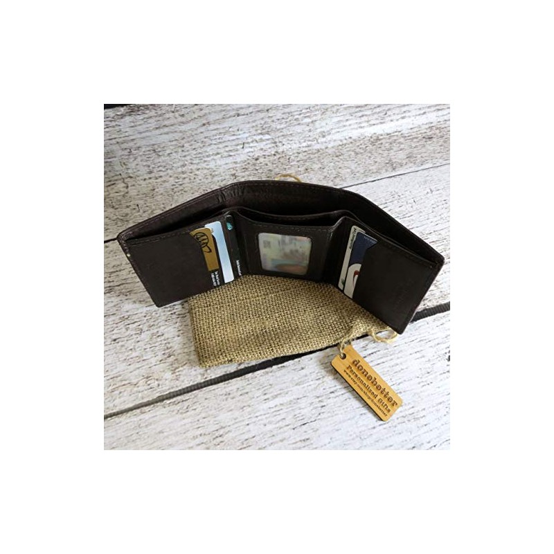 Unique Genuine Leather Tri Fold Personalized Mans Wallet White Stitching Accent (777)