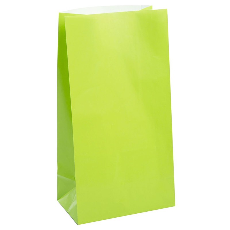 Vibrant Lime Green Paper Party Bags (Pack of 12) - Premium Quality Bags, Perfect for Celebrations & Gifts