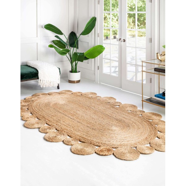 Unique Loom Braided Jute Collection Area Rug - Gauri (5' 1" x 8' Oval, Natural)