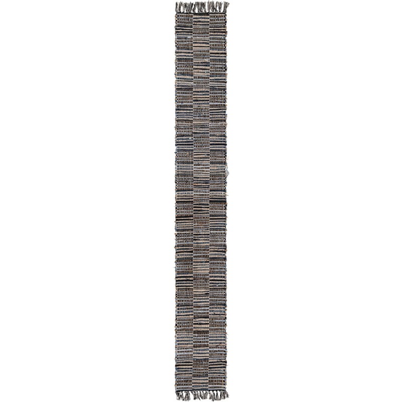 Unique Loom Chindi Jute Collection Area Rug - Checkered (1' 2" x 10' Table Runner Dark Gray/Natural)