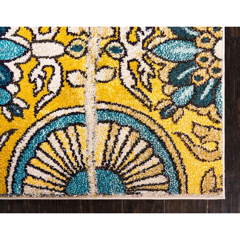 Unique Loom Estrella Collection Floral, Geometric, Vibrant, Modern, Abstract Area Rug, 2 ft 2 in x 6 ft 7 in, Gold/Blue