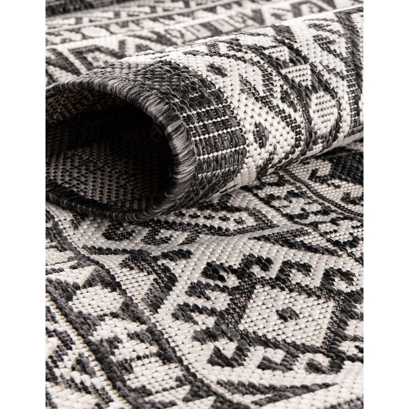 Unique Loom Outdoor Aztec Collection Area Rug - Chalca (9' x 12' Rectangle, Charcoal Gray/ Ivory)