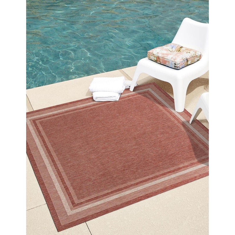 Unique Loom Outdoor Border Collection Area Rug - Soft Border (10' Square Rust Red/Ivory)
