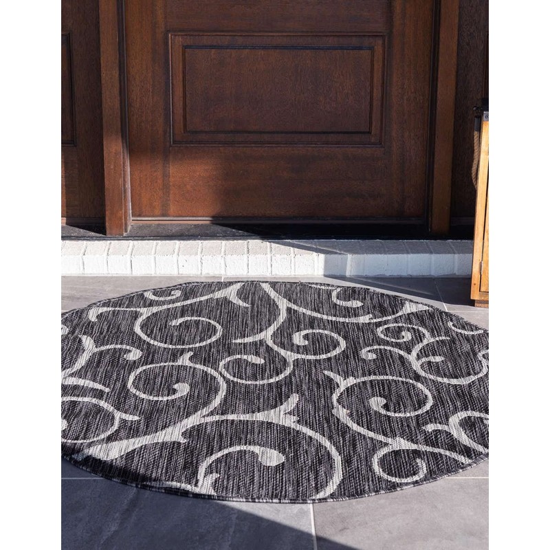 Unique Loom Outdoor Botanical Collection Area Rug - Curl (13' Round, Charcoal Gray/ Gray)