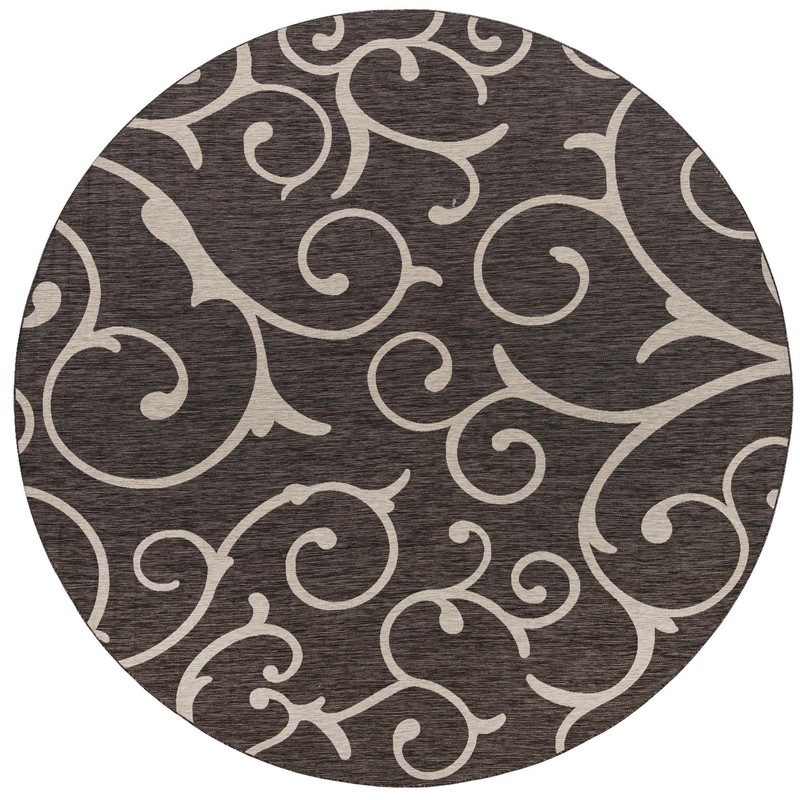 Unique Loom Outdoor Botanical Collection Area Rug - Curl (13' Round, Charcoal Gray/ Gray)