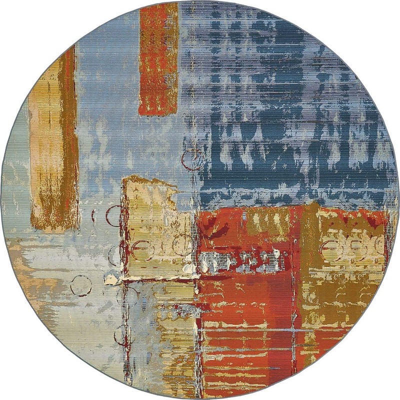 Unique Loom Outdoor Modern Collection Area Rug - Baja (8' Round, Multi/ Beige)