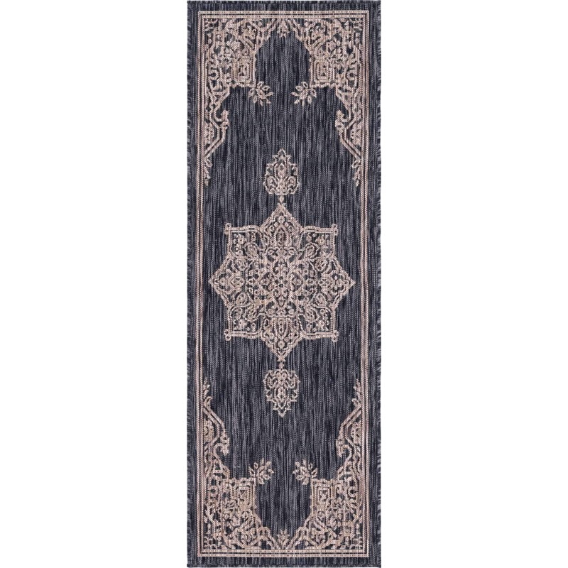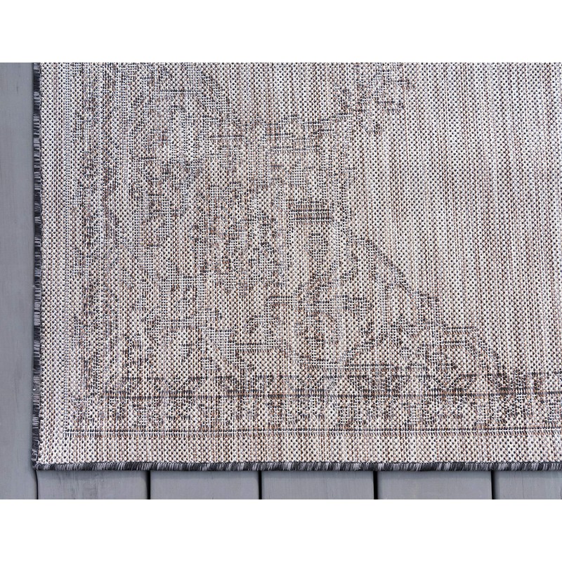 Unique Loom Outdoor Traditional Collection Area Rug - Antique (2' x 6' 1" Runner, Charcoal Gray/ Natural)
