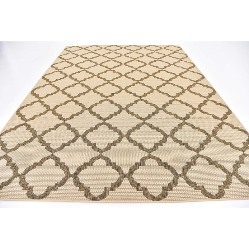 Unique Loom Outdoor Trellis Collection Geometric Moroccan Lattice Transitional Indoor and Outdoor Flatweave Beige/Brown Area Rug (8' 0 x 11' 4)
