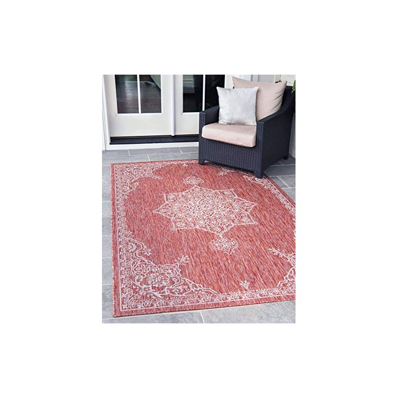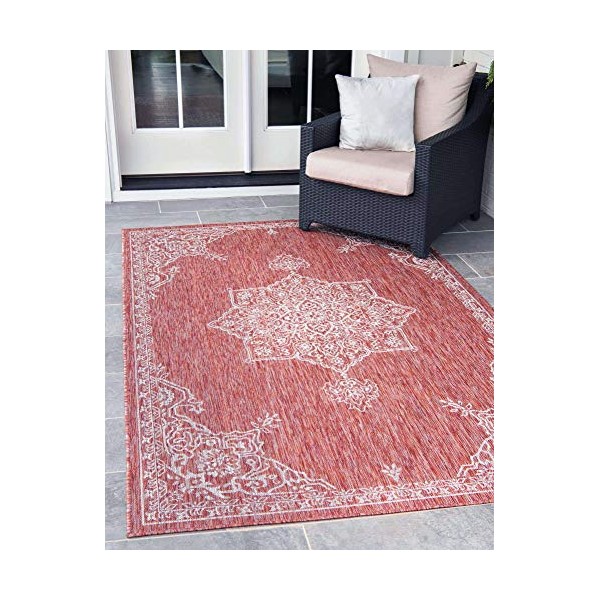 Unique Loom Traditional Classic Medallion Transitional Indoor and Outdoor Flatweave Runner Rug_OTD001, 5 x 8 Feet, Rust Red/Gray