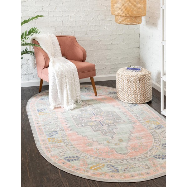 Unique Loom Whitney Collection Area Rug - Geneva (5' 3" x 8' Oval, Pink/ Blue)