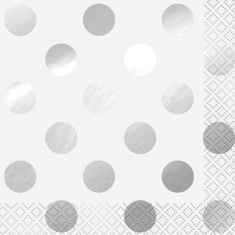Unique Party 32301 - Foil Silver Polka Dot Cocktail Napkins, Pack of 16