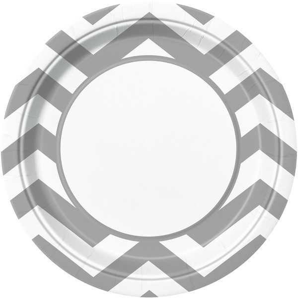 Unique Party 38615 - 23cm Silver Chevron Party Plates, Pack of 8