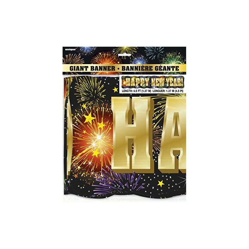 Unique Party 47738 - 4.5ft Fireworks Happy New Year Banner
