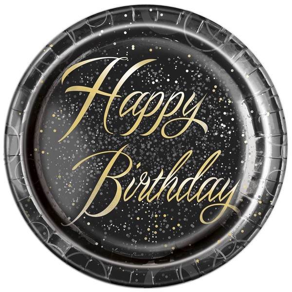 Unique Party 57495 - Glitz Gold Foil Birthday Paper Plates, Pack of 8