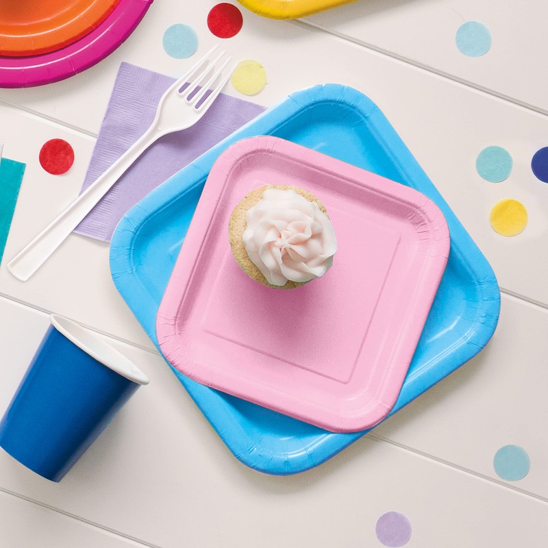 Unique Square Eco Friendly Paper Plates - 23cm - Light Blue Colour - Pack of 14