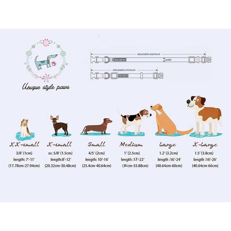 ♥Unique Style Paws is a brand that people love, with different colors and durable buckles. Collar is made with multiple layers of designer silk fabric. We use all of our products on our own pet family members and we do stand by the quality of our collars. Because pets are members of our family and we have to consider the fur baby safety. Although my handmade products are strong, but no collars or leashes are indestructible. For your pets safety, we suggest regularly checking your collar for signs of wear. Do not recommend these for pups that pull a lot or chasers,heavy-duty daily use.