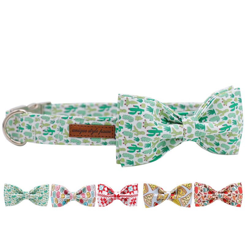 Unique Style Paws Dog Collar with Bow, Bowtie Dog Collar Adjustable Collars for Small Medium Large Dogs and Cats
