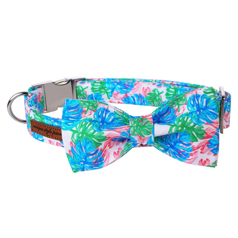 Unique style paws Pet Collar with Bow Tie, Comfortable and Durable Dog Collar, Banana Leaf Dog Collar, Pet Gift for Small, Medium and Large Dogs and Cats, XL