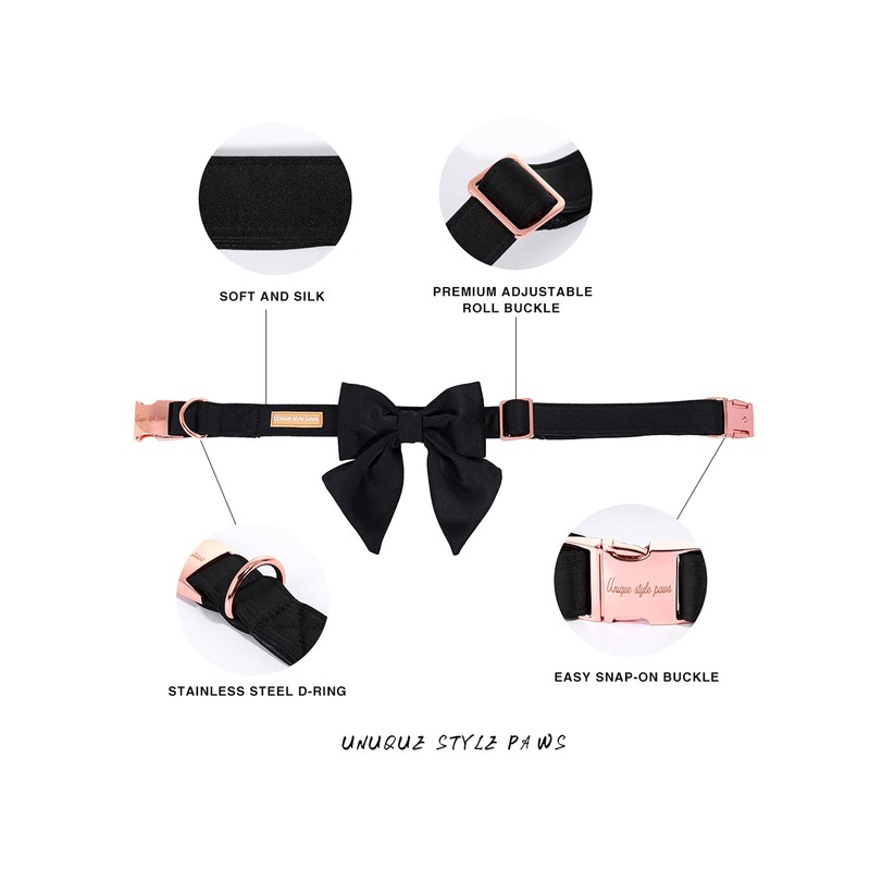 Unique style paws Silk Black Colour Dog Collar, Adjustable, Durable Dog Collar with Bow, Wedding Bow Tie, Dog Collar for Small Puppies and Cats